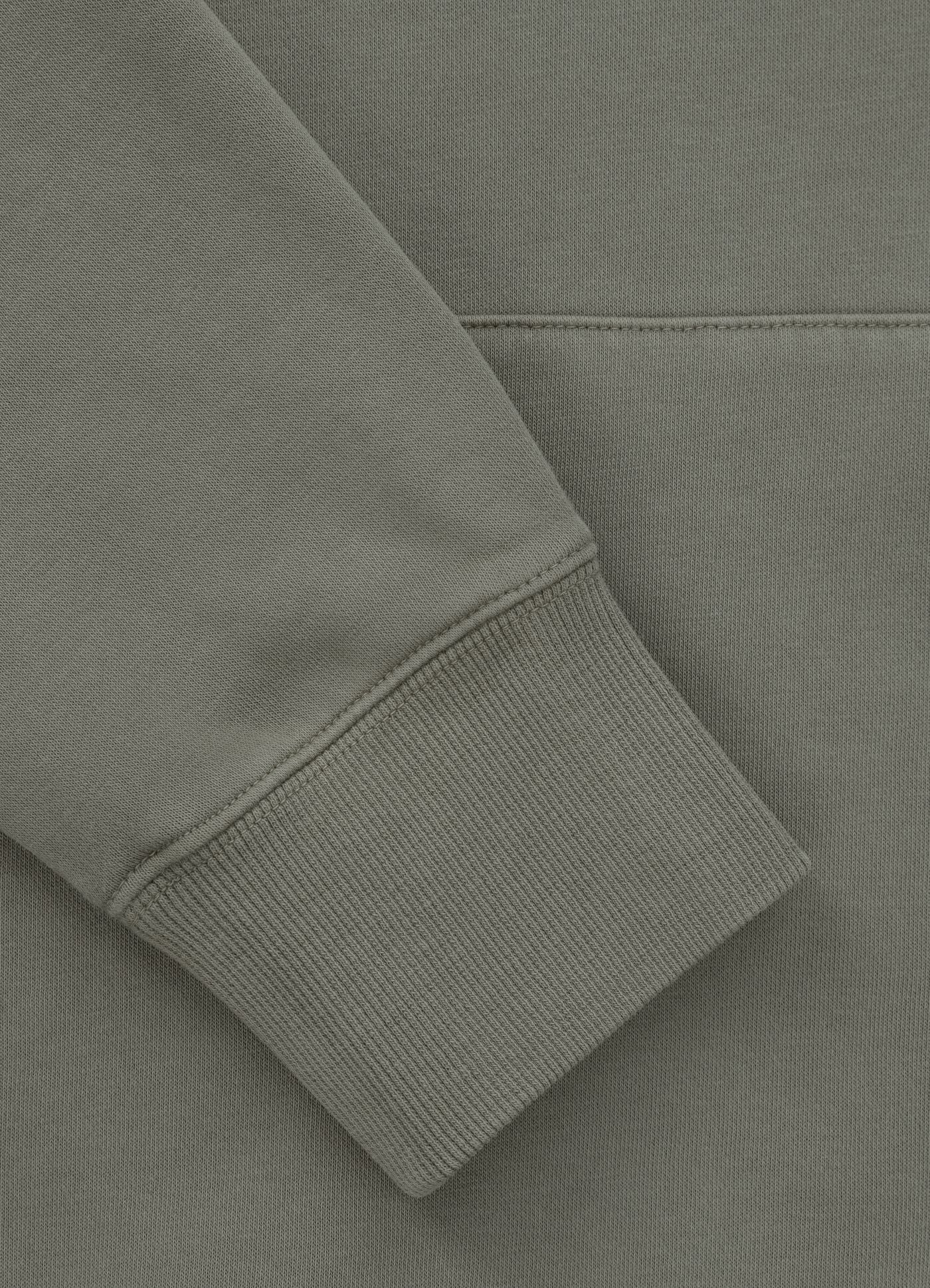 - wide ribbed welts on the sleeves and at the bottom of the sweatshirt