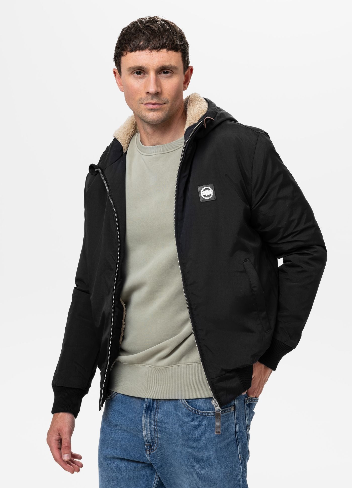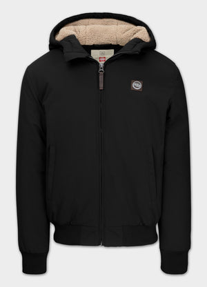 Heavy-duty winter jacket with sherpa lining, weather-resistant taslan fabric, and an insulated hood for superior cold-weather protection.