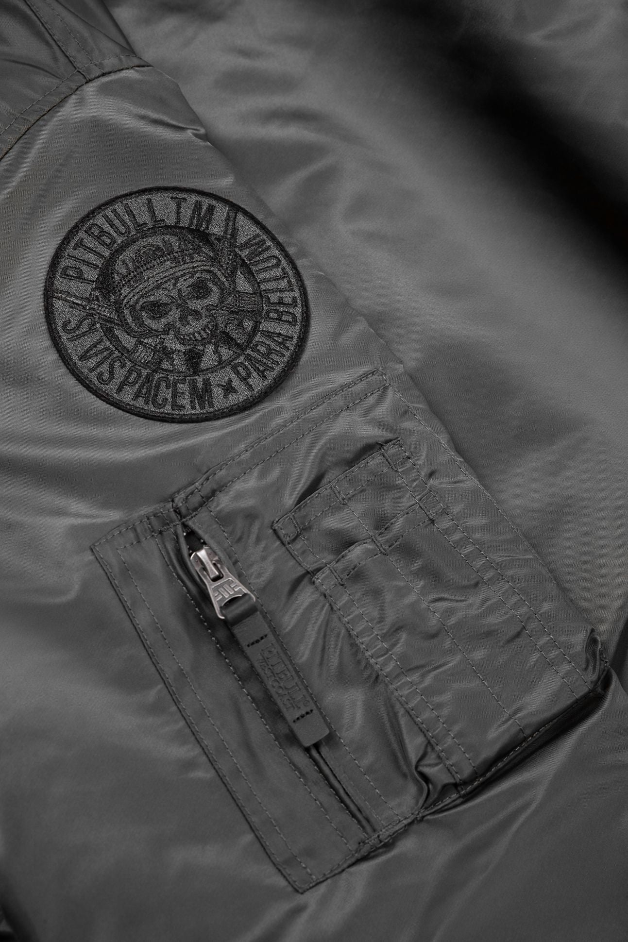 - small embroidered Pitbull logo on the chest