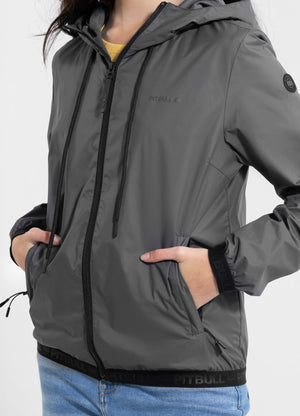 - integrated hood with high stand-up collar and drawstring regulation