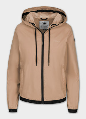 - integrated hood with high stand-up collar and drawstring regulation