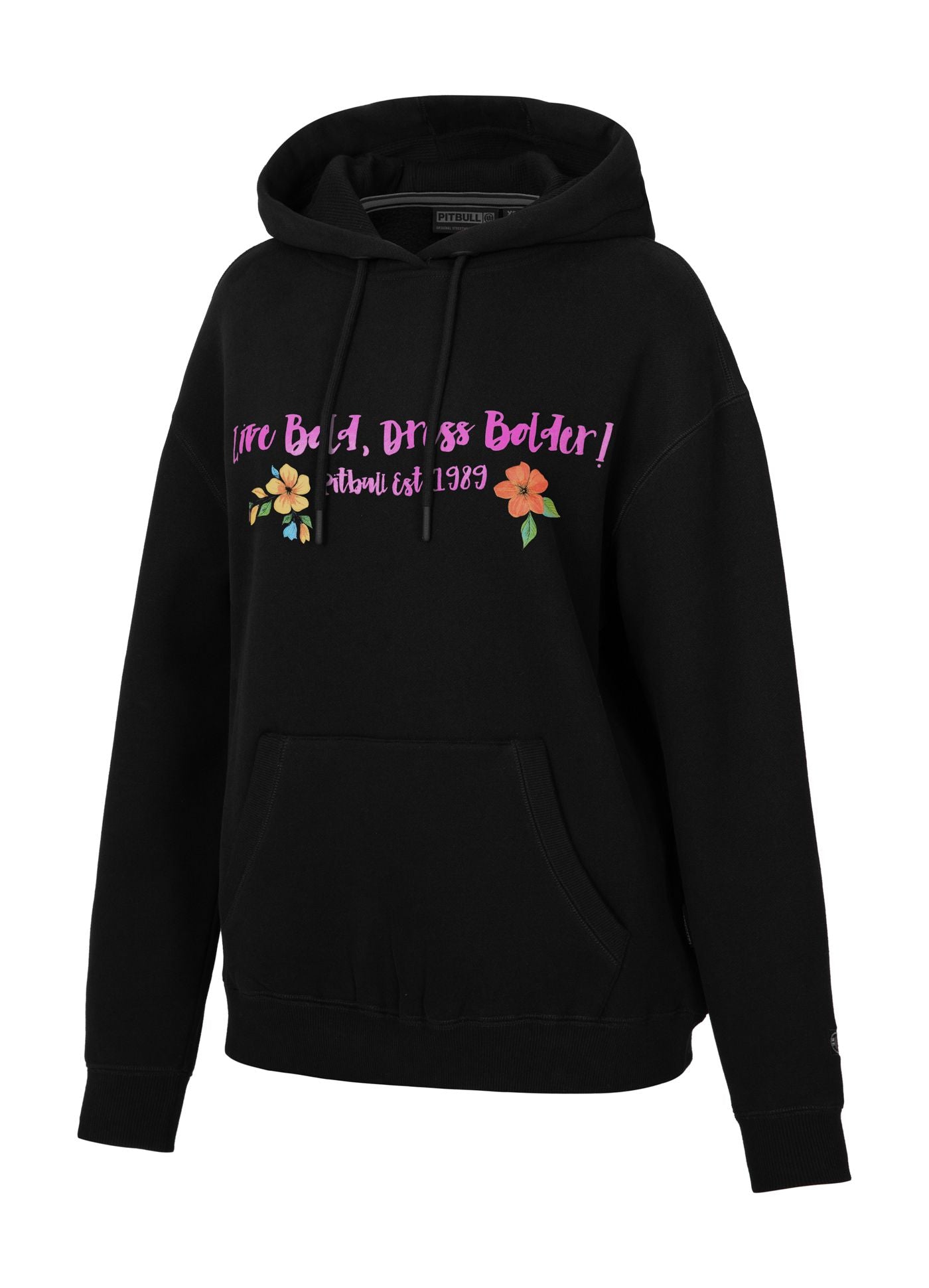 - large front kangaroo pocket with ribbed trim on the sides